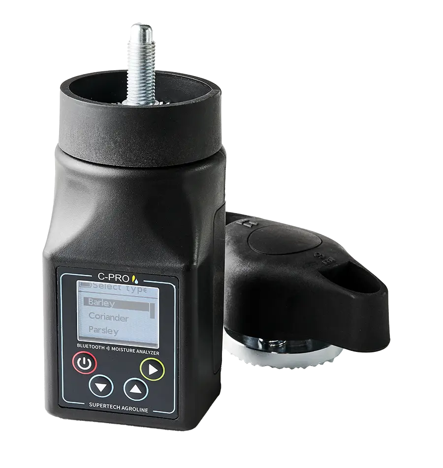 C-Pro je nový digitální vlhkoměr pro obilí kapesního formátu, který měří vnitřní vlhkost zrna a semen. Měřený vzorek obilí nebo osiva je v jednom pracovním kroku současně rozemletý a stlačený, což zaručuje přesné zjištění jeho vlhkosti.