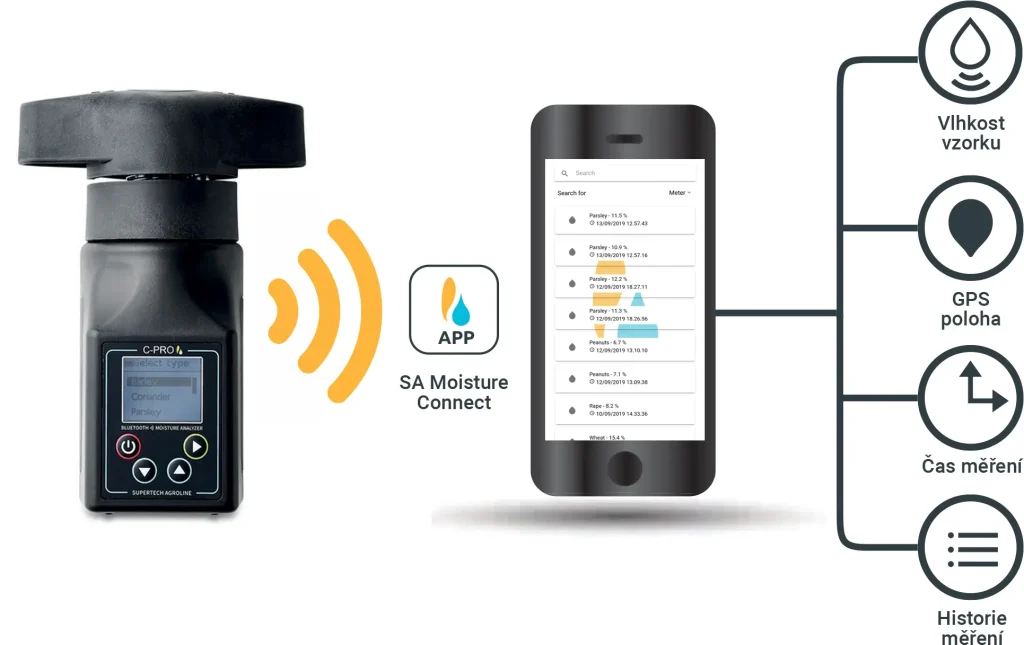 Souběžně s novým vlhkoměrem C-Pro dánský výrobce vyvinul speciální aplikaci pro chytré telefony, s jejíž pomocí můžete evidovat GPS souřadnice každého místa odběru vzorku, čas, poznámku i fotografii a sledovat průběh měření. Monitorování vlhkosti je nyní snazší a praktičtější než kdy jindy. Aplikace komunikuje i v češtině.