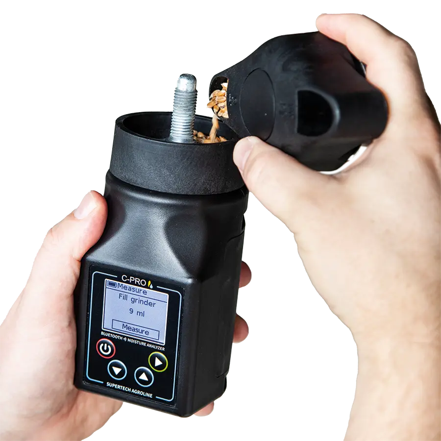 Efektivní skladování sklizně je nezbytné pro zajištění vysoké kvality zrna a pro zabránění ztrát produktu. Management vlhkosti je klíčem k bezpečnému skladování. C-Pro je novou generací vlhkoměrů na obilí s integrovaným mlýnkem. Můžeme s jistotou říci, že se jedná o technicky nejvyspělejší přenosný měřič vlhkosti zrna na světě.