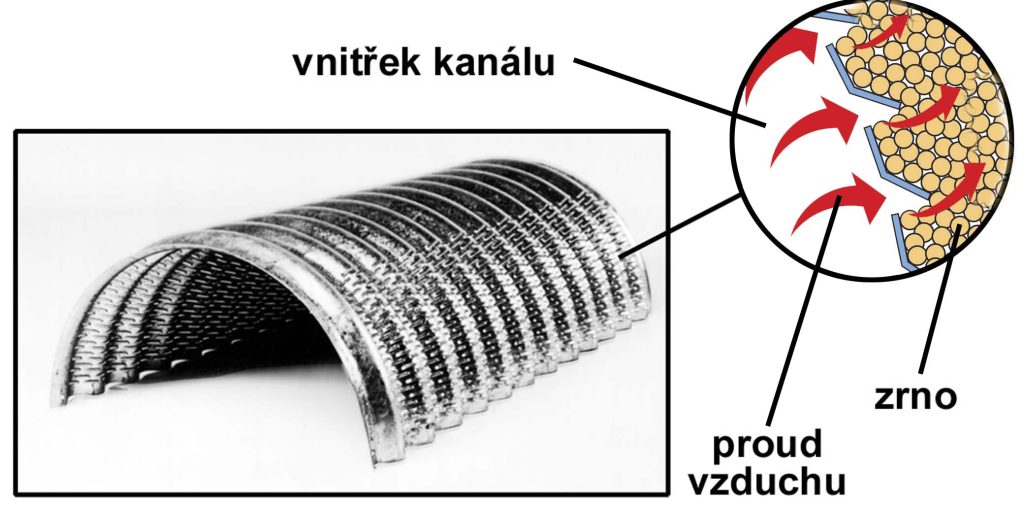 Vzdálenost středů kanálů je závislá na skladované plodině. Pro sušení se doporučují následující hodnoty: