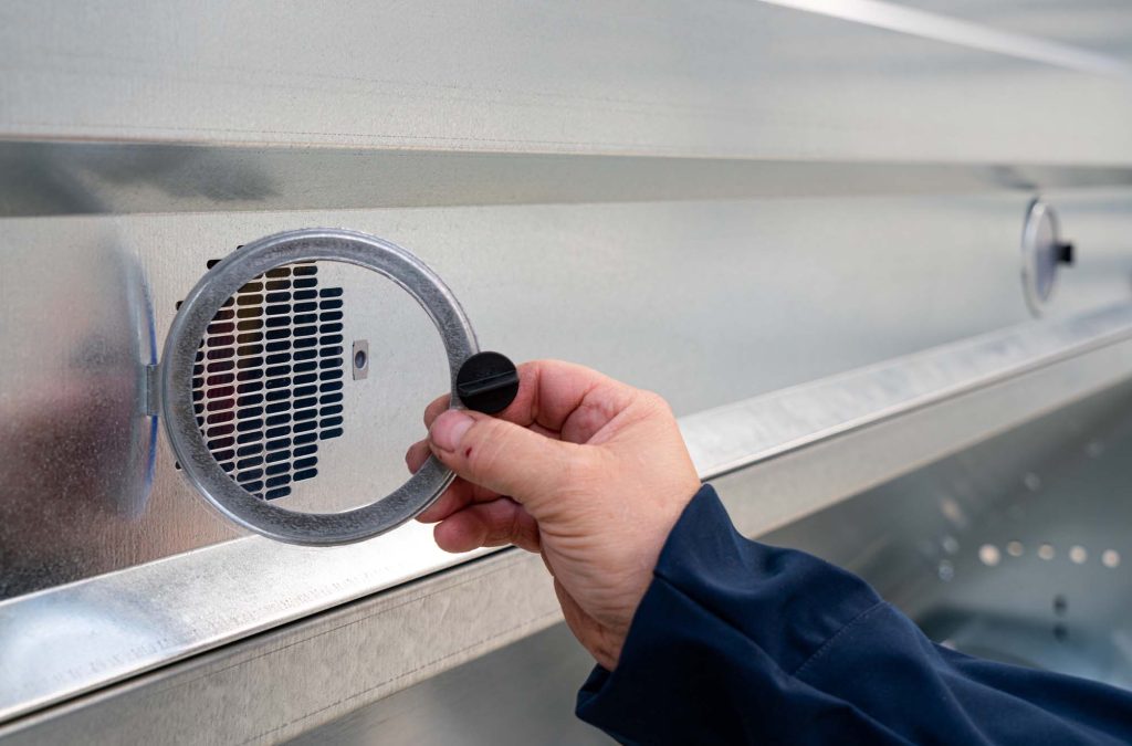 Boční kryty lze snadno otevřít, vzduchové vzpěry je drží v otevřené poloze – to šetří čas a zefektivňuje výměnu sít