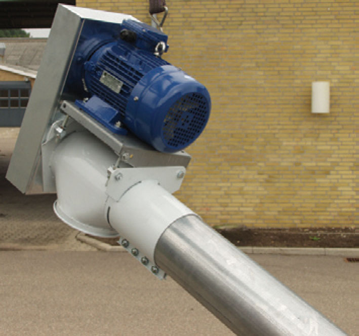 Šnekové dopravníky Kongskilde se vyrábějí v pěti průměrech, DGA vždy s pohonem klínovými řemeny, u DGS 205 můžete volit mezi pohonem