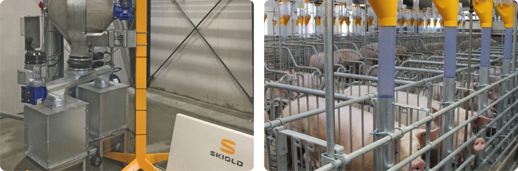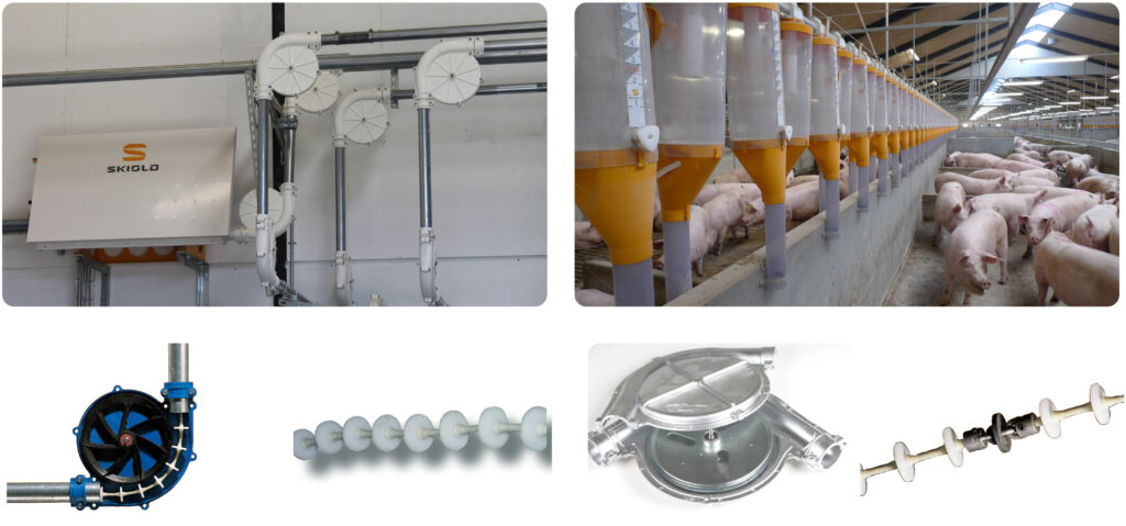 Dopravní systém TransPork® se často používá k plnění objemových dávkovacích jednotek SKIOLD nebo jako plnicí systém pro krmítka Maximat®. Pohonnou jednotku lze umístit jak na stěnu, tak na podlahu.