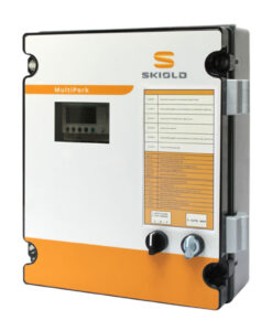 Násypka SKIOLD má jednoduchou konstrukci z nerezové oceli, vhodnou jak pro venkovní, tak pro vnitřní montáž. Násypka může být umístěna samostatně na podlaze nebo zavěšena pod silem. Vstup je přizpůsoben pro standardní násypky, ale k dispozici jsou i speciální napojení. Množství krmiva lze snadno upravit bez použití nářadí a průběh dávkování lze sledovat skrze kontrolní okénko. Skříň násypky je samovyprazdňovací, což snižuje hromadění starého krmiva. Bezpečnostní spojka zabraňuje poškození zařízení, způsobené cizími tělesy v dávkovacím šneku. Pro separaci cizích těles lze použít také přídavný lapač kamenů. Násypka je k dispozici v motorizované verzi a verzi poháněné lanem pro TransPork 50.8 mm a v motorizované verzi pro TransPork 63.5 mm. Motorizované verze snižují zátěž lana a také umožňují řídit plnění systému.