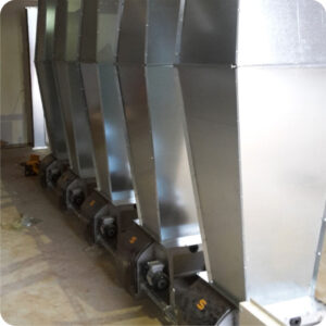 Před startem nového krmení lze zbylé krmivo vyprázdnit z potrubí do malé přepadové násypky. Otvírání a zavírání této násypky zajišťují automatická šoupata 24V. Při každém startu je nejprve vyprázdněna přepadová násypka a až poté je krmivo odebíráno ze sila.