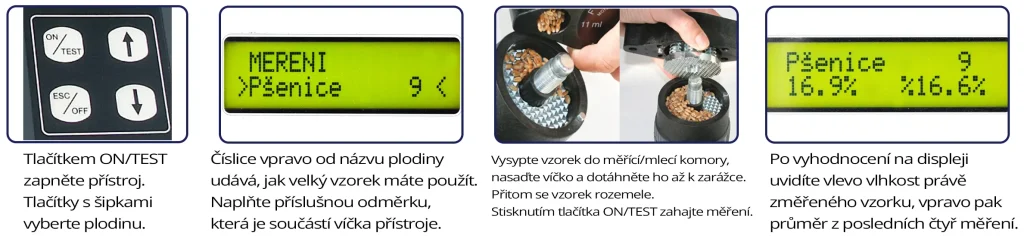 Jak obsluhovat vlhkoměr na obilí Farmpro?