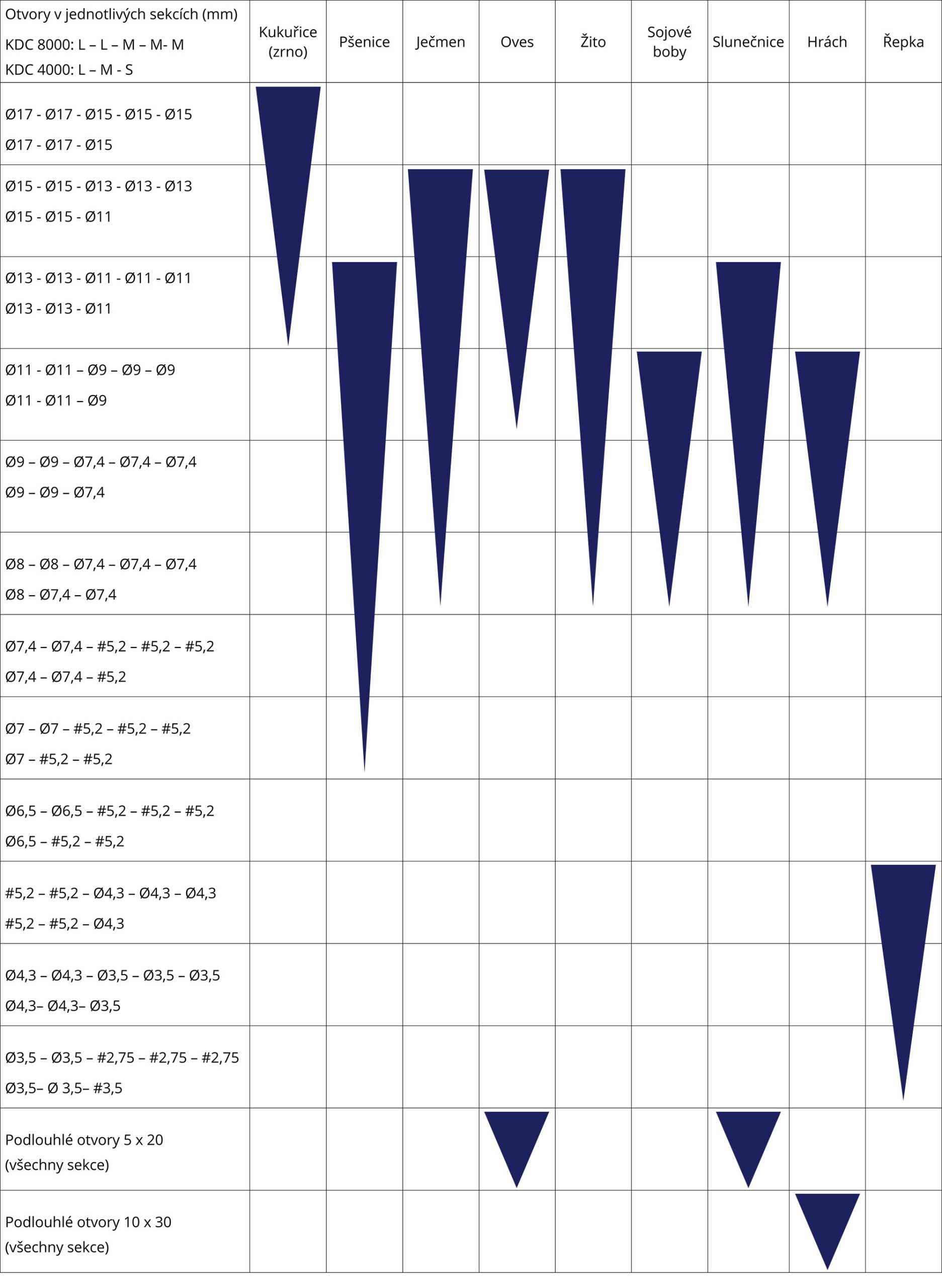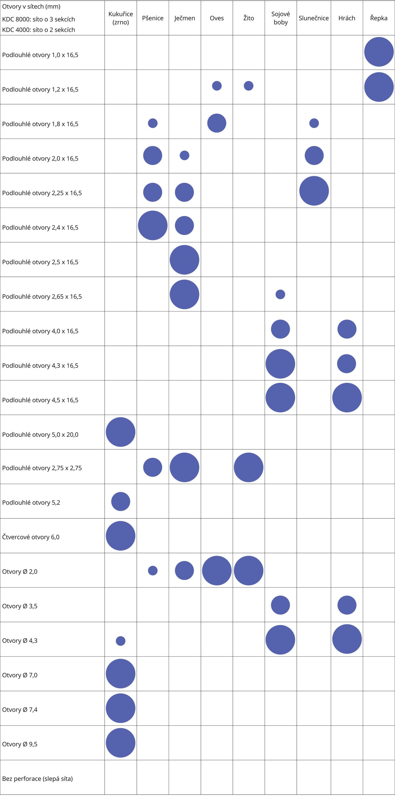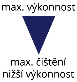 Vnitřní síta s většími otvory zvyšují výkonnost, ale spolu s tím se snižuje množství odstraněných nečistot.