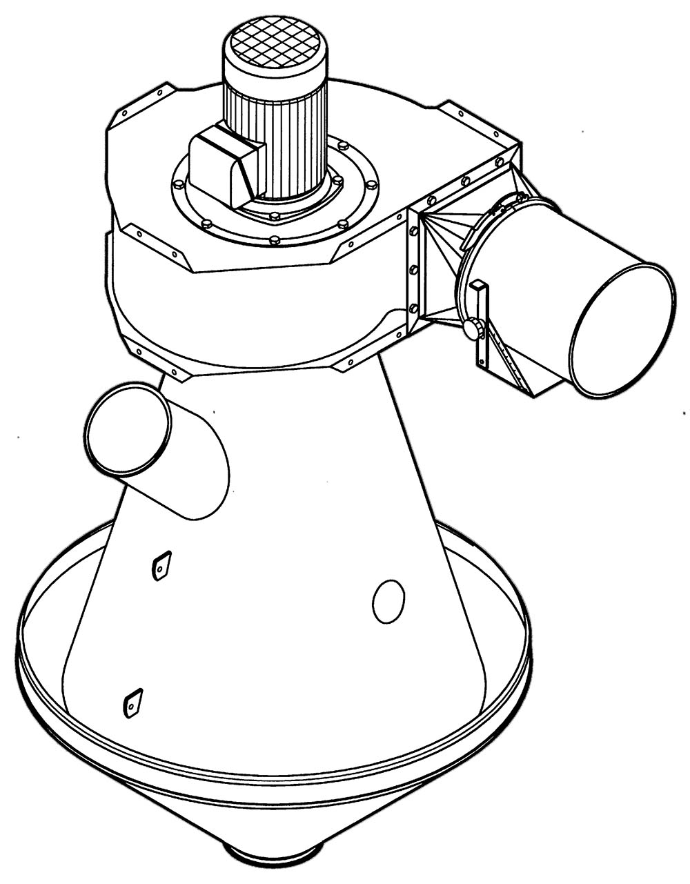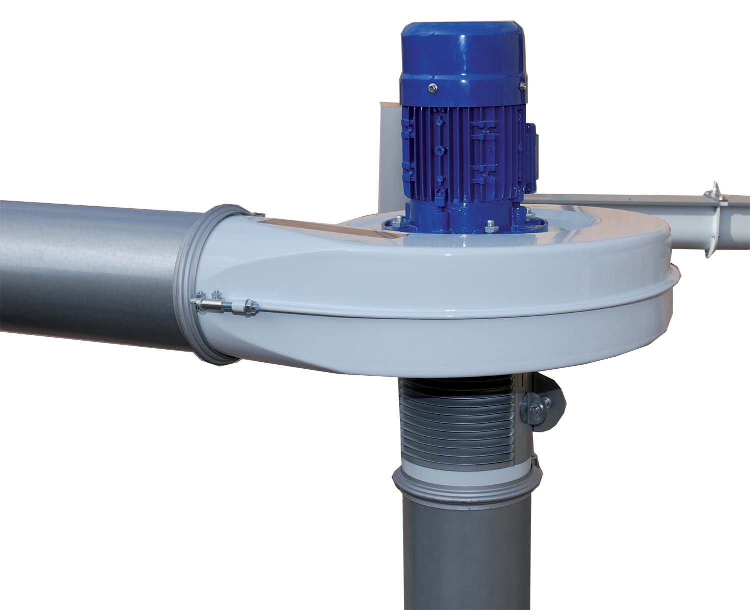 Ventilátor a klapka regulace vzduchu mohou být umístěny na libovolném místě dopravních potrubí. Klapka regulace vzduchu by však měla být umístěna tak, aby bylo možné ji snadno seřizovat, např. v blízkosti prachového cyklónu, kde je nejlépe vidět výsledek procesu předčištění.